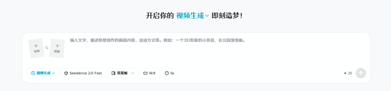 - 首尾帧模式:仅需上传开头、结尾两张参考图,搭配文字描述即可生成视频,操作简单,适合新手入门练手,快速熟悉工具逻辑;